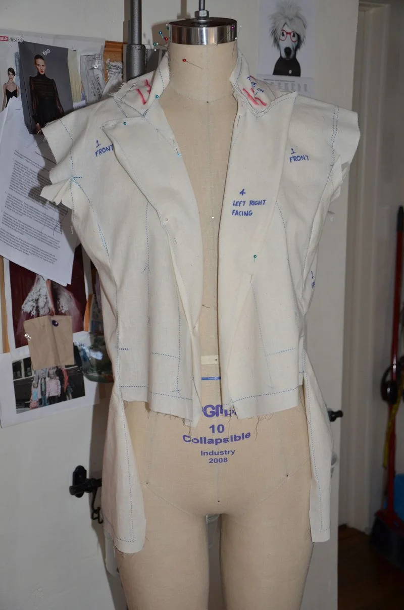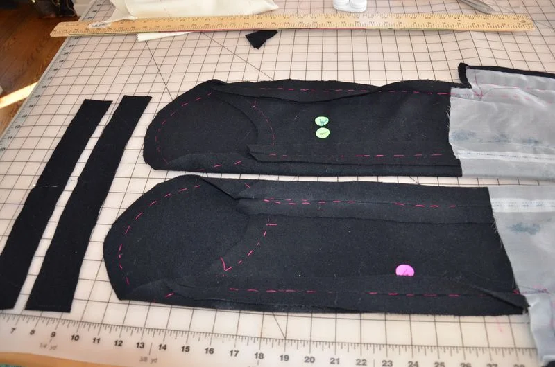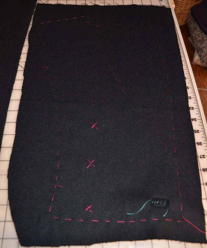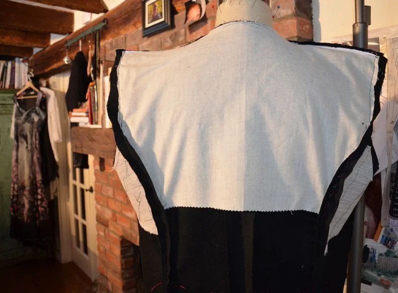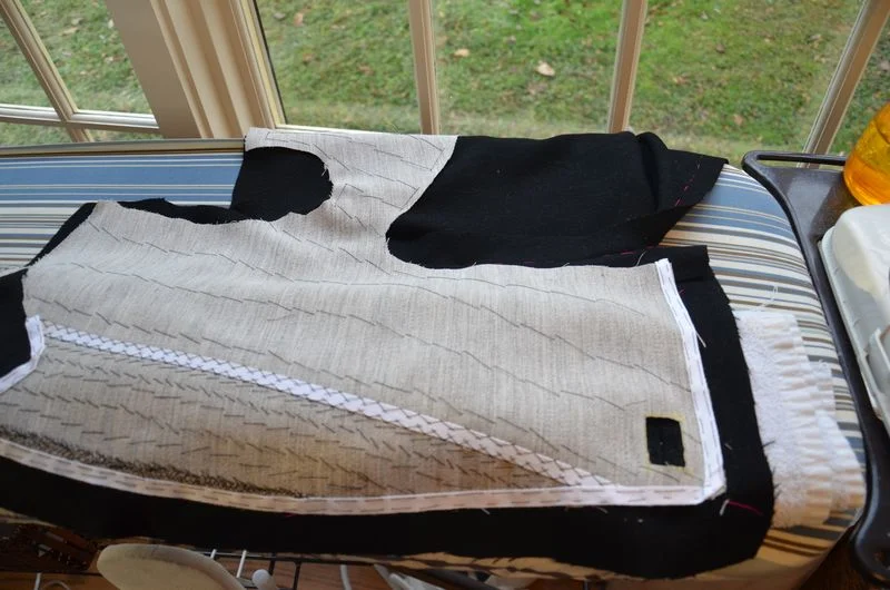 After laying out all the pattern peices I knew I needed to make 1) a back stay, 2) hair canvas pattern peices for the facings and 3) change the collar so that the stand and undercollar become one. This definitely would make it easier for pad stitching and shaping, and remove an extra seam allowance in the lower collar.