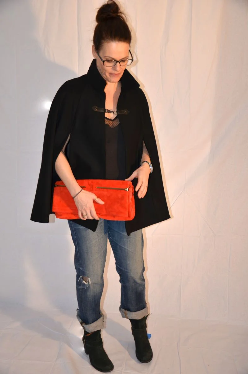I am consciously trying to use fabric I already have , So the three yards of Ralph Lauren cashmere left over from my cape last year bought at Michaels fabrics was perfect. I had enough scraps of white wool left for a facing and my lovely husband ran over Mood last week to pick up a half yard of red cashmere....... good for me that he works close by...bad for him, although he does love a Swatch sighting!