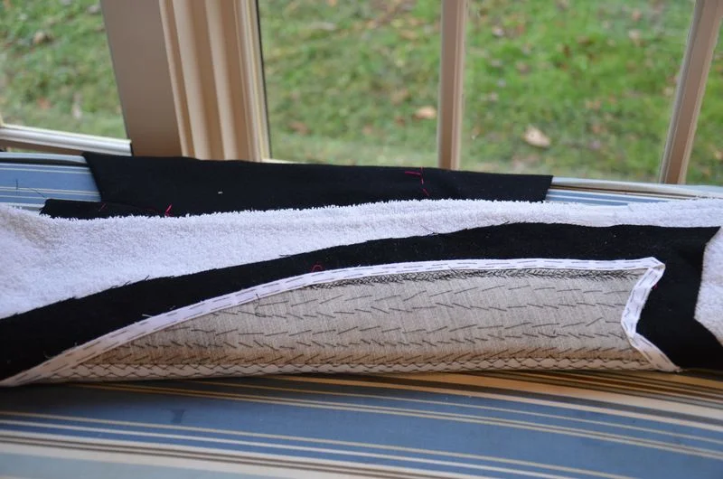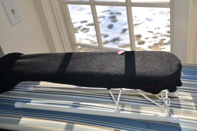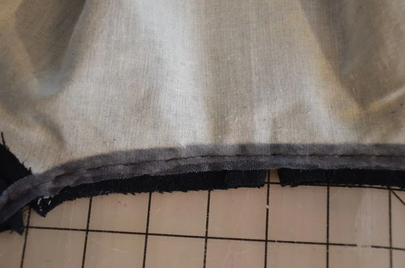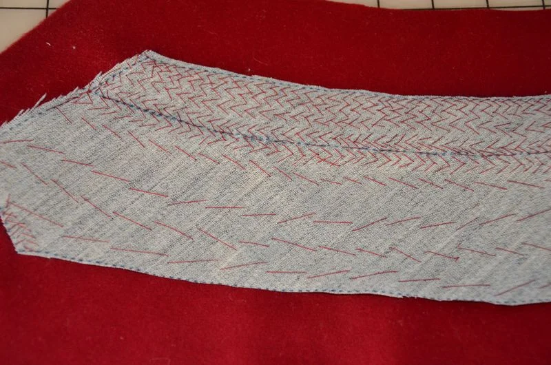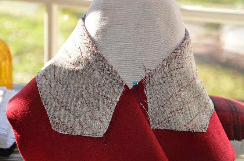 The collar was so much fun, I love the way it comes together...truly amazes me that somebody worked out hundreds of years ago that the techniques of pad stitching and the heat from a hand would show the wool where to gently fold. Once I had finished stitching, I set it on my ham and gently steamed it, letting it cool overnight. Walking into my sewing room the next morning seeing the ham and collar never fails to make me laugh :-)