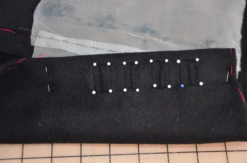 and onto the sleeve bound button holes, in my enthusiasm I decided to do the two on the jacket front and the four on each sleeve vent....yep a whole day later.....