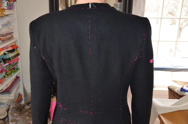 and that"s as far as I got this week, life is busy...the plan today is to sew the front and back facings together, fit them to the jacket and collar and start machine stitching them in. Then it's onto the hem's and lining.