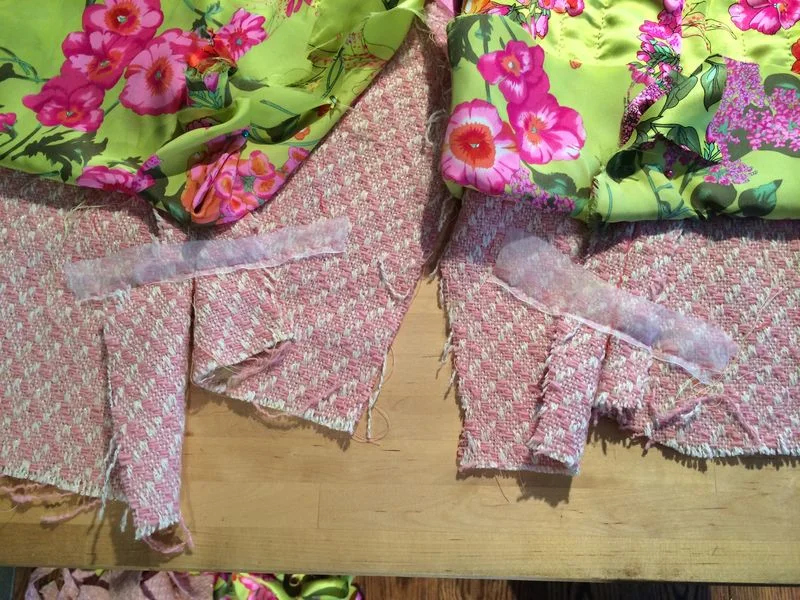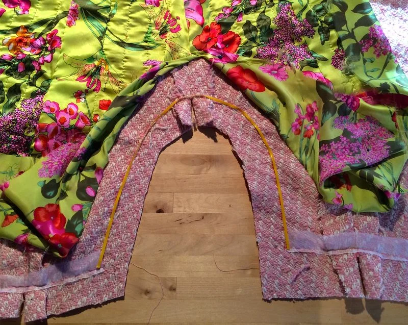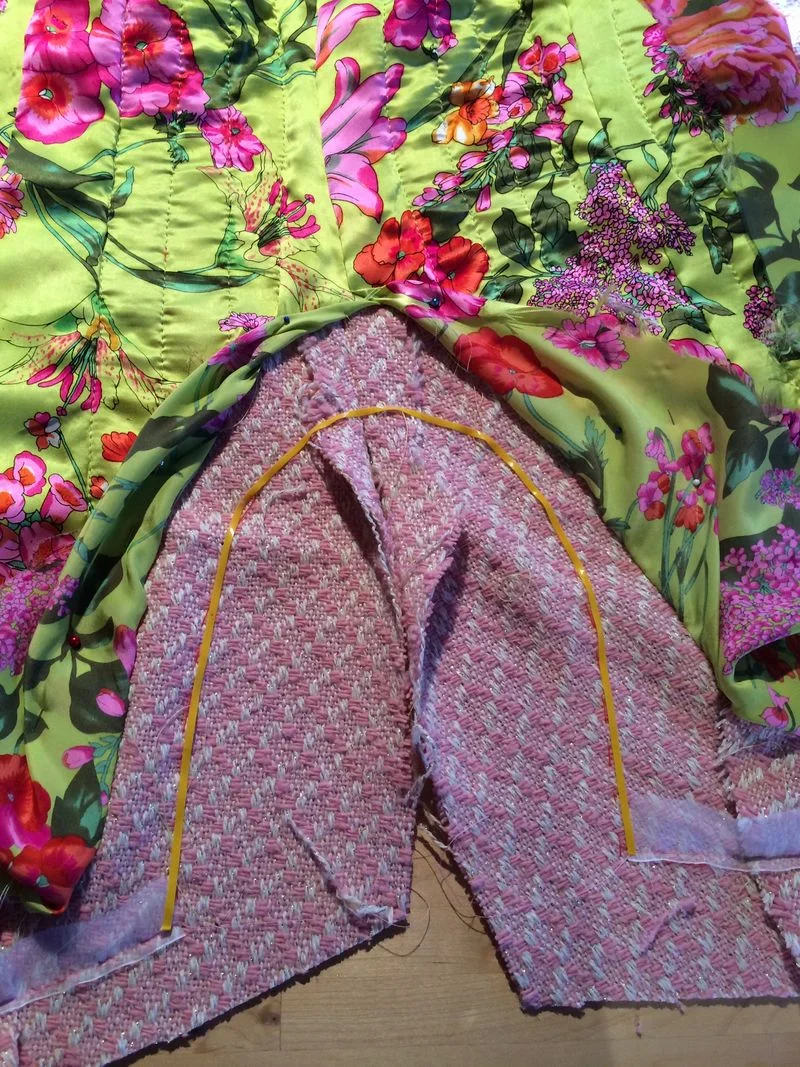 YOUR SLEEVE LINING WILL LAY ON TOP OF YOUR BODICE LINING WITH THE SEAM FACING TOWARDS THE CENTER FRONT OF THE JACKET