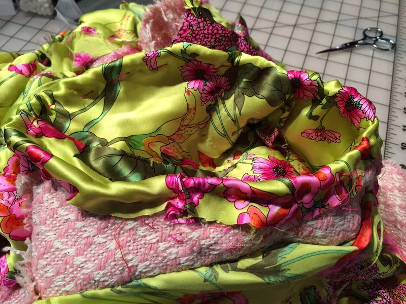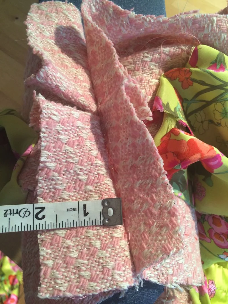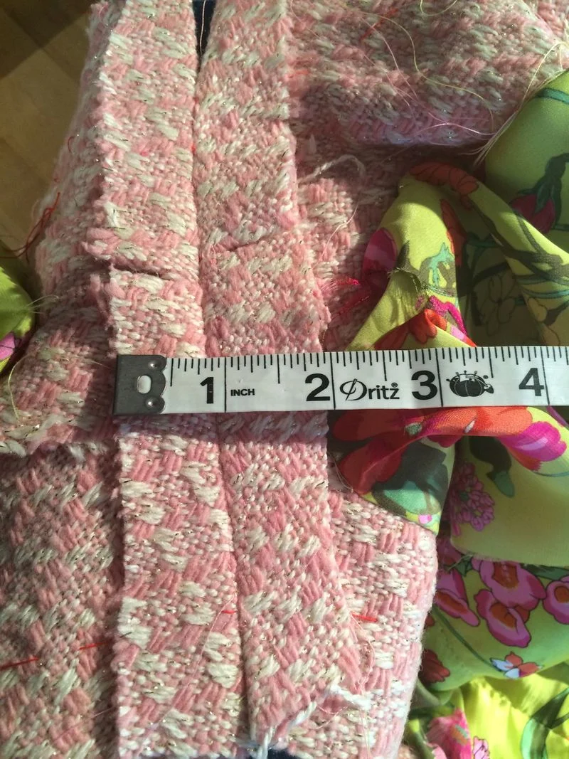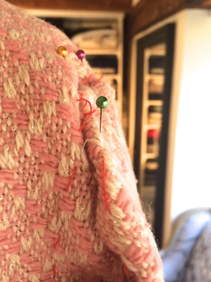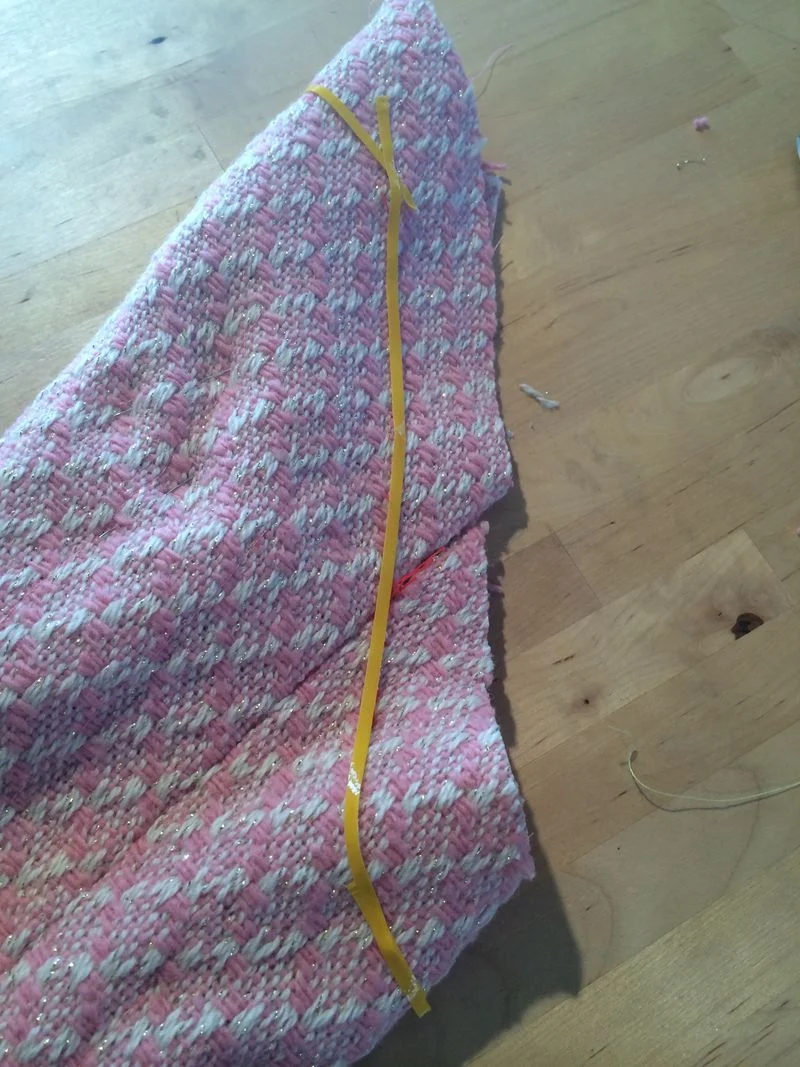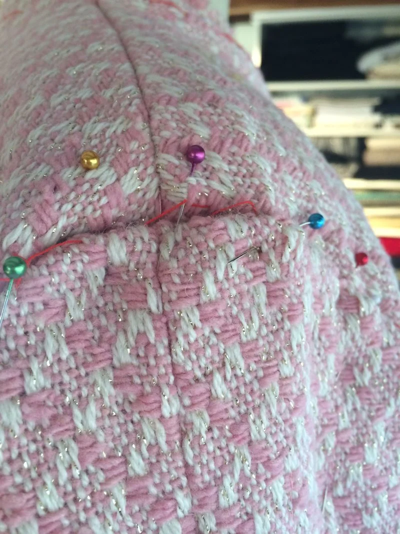 and frustratingly I found that Lila's jacket was not photographing as well as I would have liked, so we made a pink boucle jacket yesterday, which is much easier to show detail with, yey nine jackets for me!!