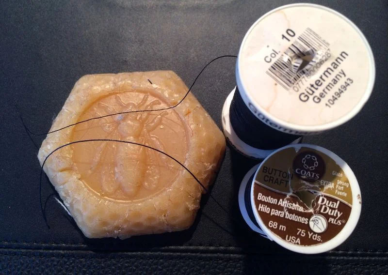 Beeswax is a must if you are sewing your sleeves from the outside. It strengthens your thread while leaving it soft, thin and flexible.