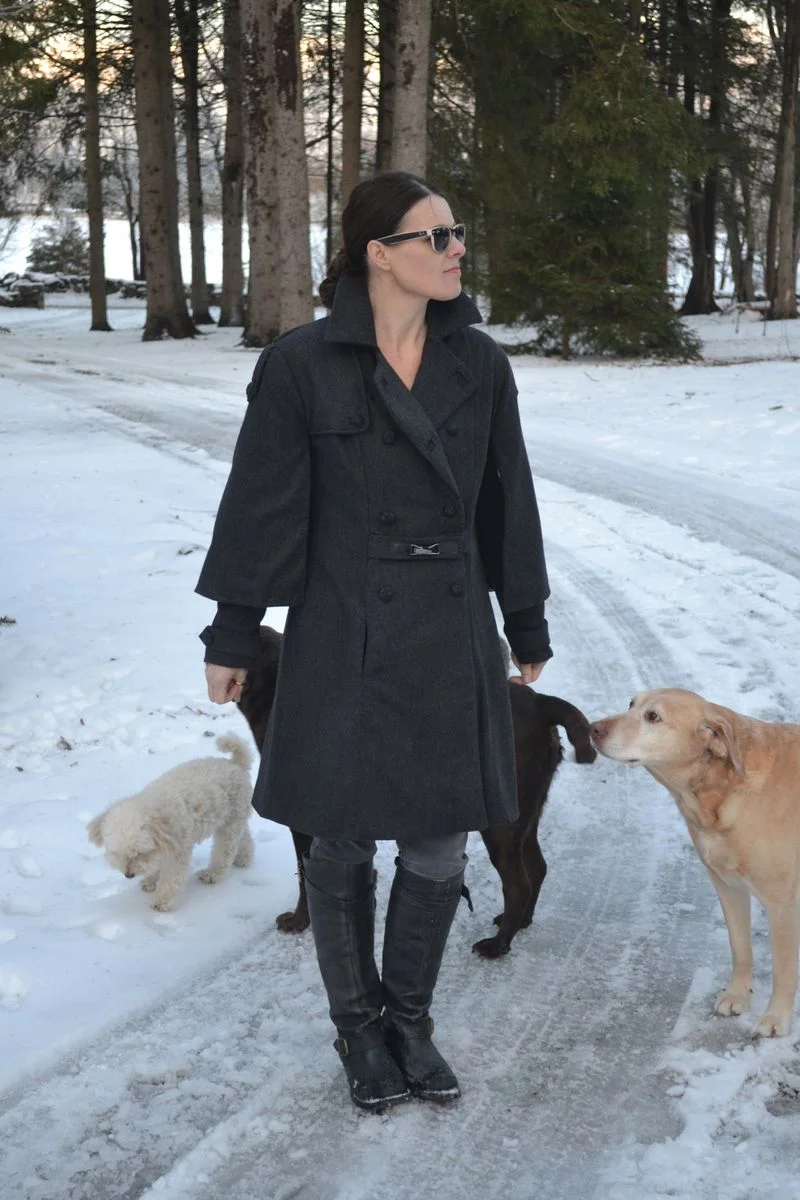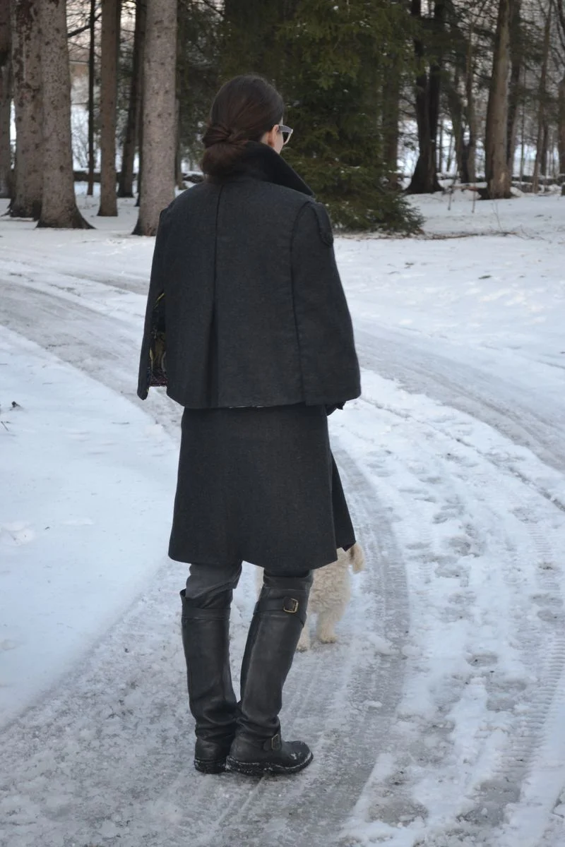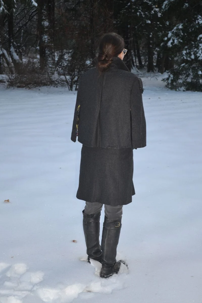 I was also concerned that making a coat with a cape in a dark wool could be a problem, as the small details tend to get lost in that much fabric...So I knew visually I needed to define my waist.