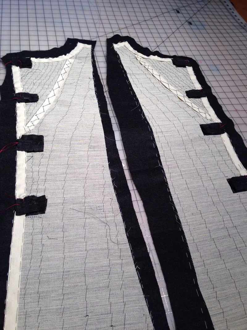 although its not that common , I ended up putting hair canvas on the entire front panel to support and shape both the wool and all of the bound button holes...