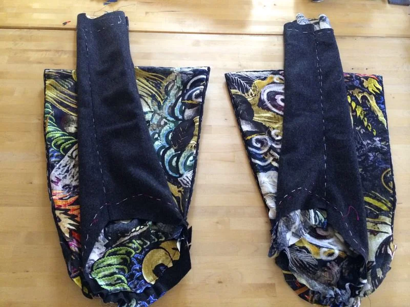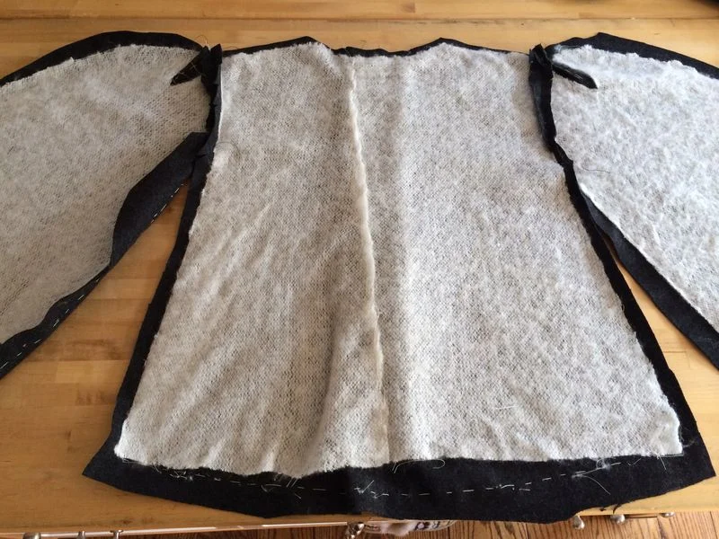 Logically it would have made more sense for the cape to be sewn as one, the sleeves sewn to the cape and then the entire thing sewn to the bodice...