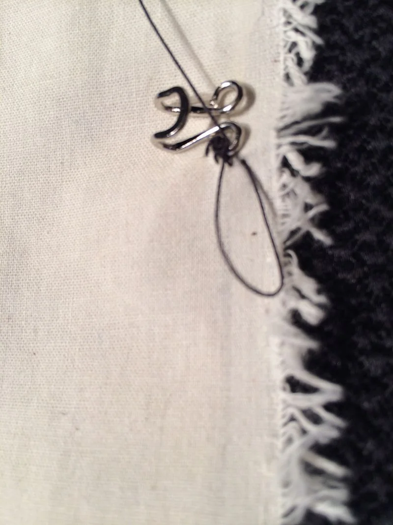 and feed your needle back through the loop, pulling it closed, using your fingers if necessary to push it firmly towards the metal.