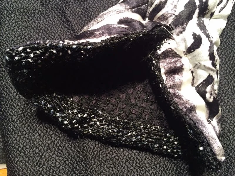 If possible when you do shop for trim, take your jacket or a very large swatch with you..so you can lay the trim out and stand back. Boucles tend to be visually overpowering so you might need to layer your trim with ribbon or similar to make it stand out sufficiently.