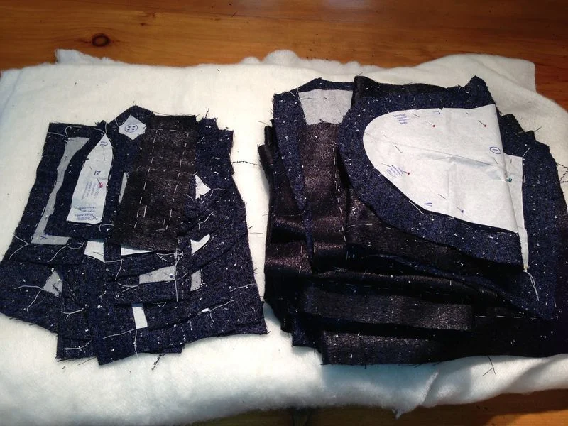 This was a little tricky as I wanted to go to Camp Couture this time to learn how to do the "finishings", professional bound buttons, the most beautiful pockets flaps, exquisite top stitching! so I thought it would be better to tailor as I normally would and remove what I need to when I get there. I don't know quite how to add the bound buttons holes to the jacket now its at this point but its always quicker to take something off or cut a chunky square out, then it is to add it!