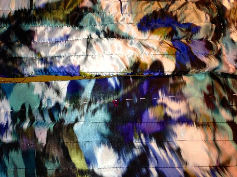 The quilting took some time to figure out, normally a walking foot is a absolute must but the ice wool was causing havoc, being sandwiched between the two and so I went back to the regular foot and used a 4.8 stitch which although is much bigger than I have used before allowed the fabric to lay flat and not resemble a puffa jacket!