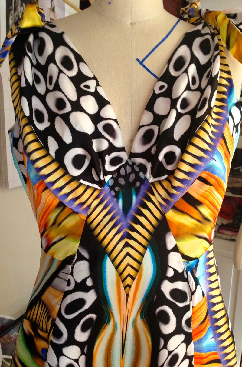 The problem with matching a large repeat is where you draw the line. What I really needed was to buy another three yards to match the skirt panels perfectly, could I in anyway justify it??!!... Er no...and let's be honest, it's a dress to wear in my real life not my imaginary Nina Garcia fashion editor one...