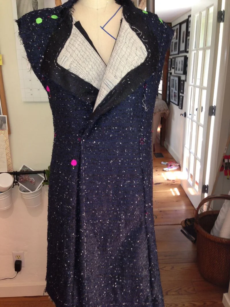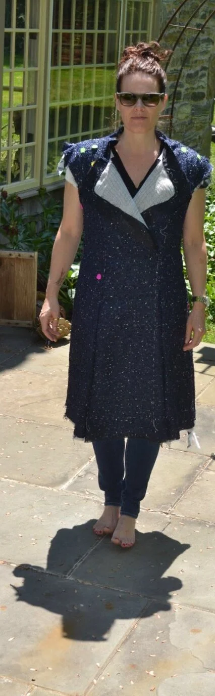 If I was making this at home I would say the fit was pretty close but its hard to tell with so much going on inside, however Susan will know immediately, thankfully.....this is lovingly called the Shaggy dog look in the French jacket class!