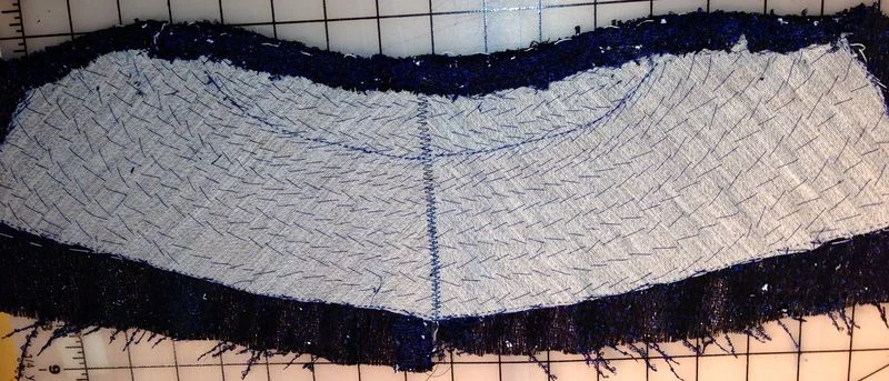 It was getting really bulky around the seams, so I cut the hair canvas seams off and zig zagged them to reduce the layers. The wool still has its seam allowance and is cut on the grain, the canvas is cut on the bias.