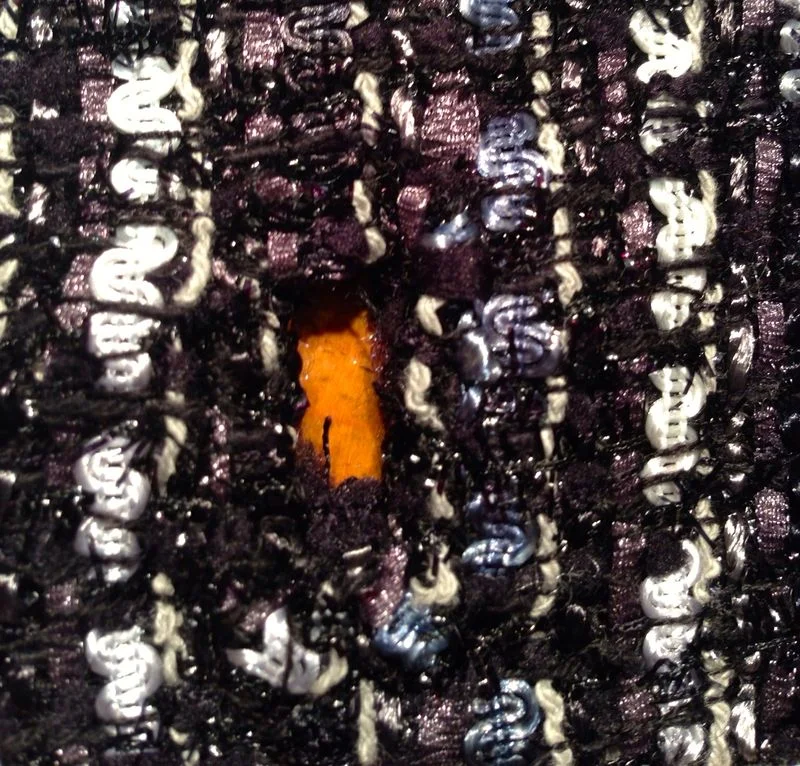 I decided to put just two bound button holes into this jacket so that I could do it up but not make them a feature, I've left them very loosely closed so that the wool does not get stressed with a button going in and out. It should slip through without much forcing I hope. Of course they are not really the done thing in these kind of fabrics but I hate being told I can't! once the facing is on, the open hole will all but disappear and the hair canvas behind will support it perfectly.