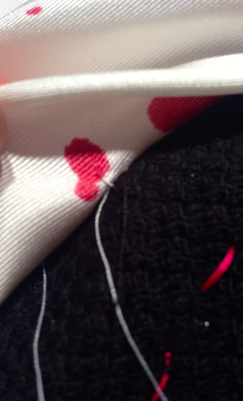 lots and lots of tying off knots.. pulling the ends from the thread and bobbin into the middle of the jacket and double knotting.