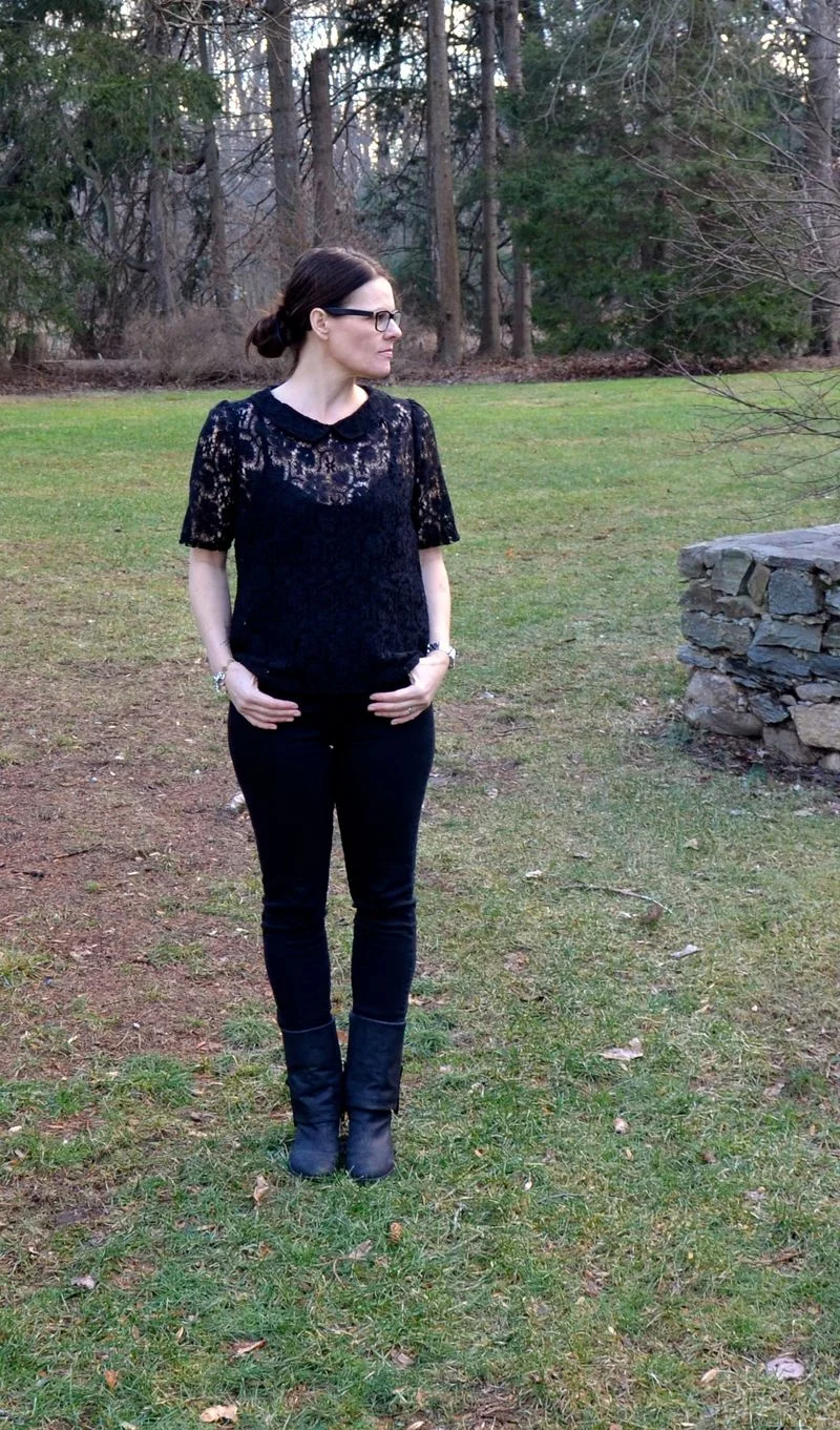 When all your fitting adjustments are made, baste your peices together again and try your blouse on...and take lots and lots of pictures. You would be surprised at just how many more fit issues you can see when you are not twisting in front of the mirror!