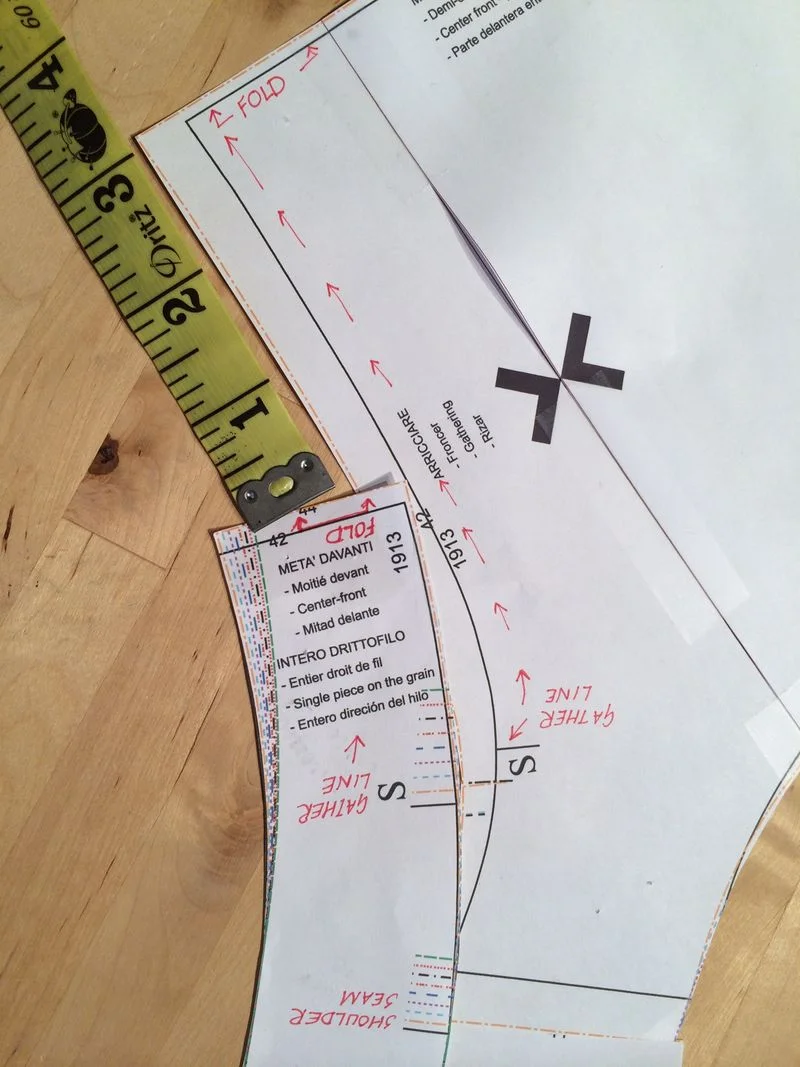 You will notice from the picture that there are gathers shown but that there are no specific gathering lines marked on the pattern.