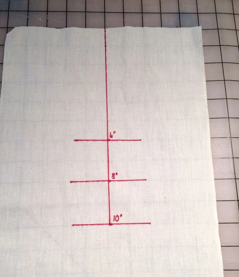 Cut a swatch approx 15" wide and 20" long on grain, find the exact middle lengthwise and mark where your slash will stop (mine is 6")