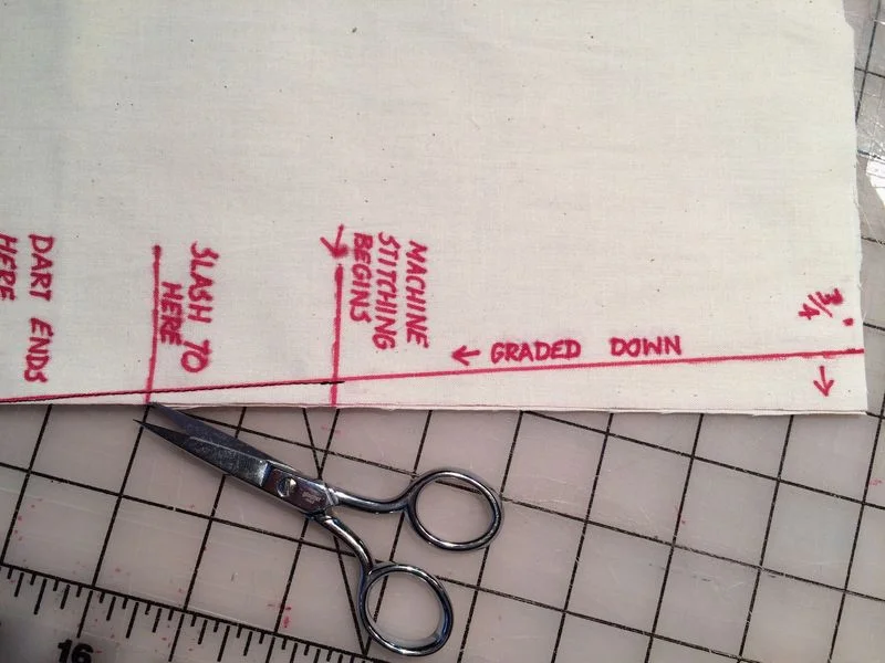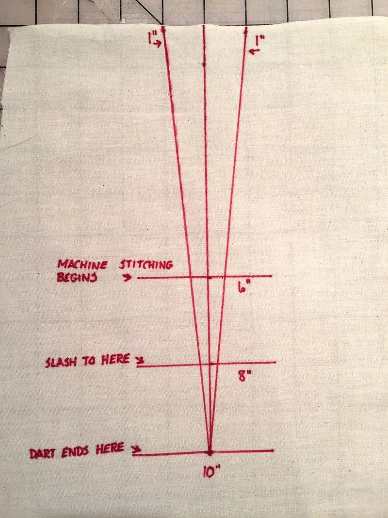 At the top mark 1" on either side of the center line and grade from there to the 10" dart end.. You can make this seam allowance bigger or smaller than 1" but try this first to get a feel of the process...