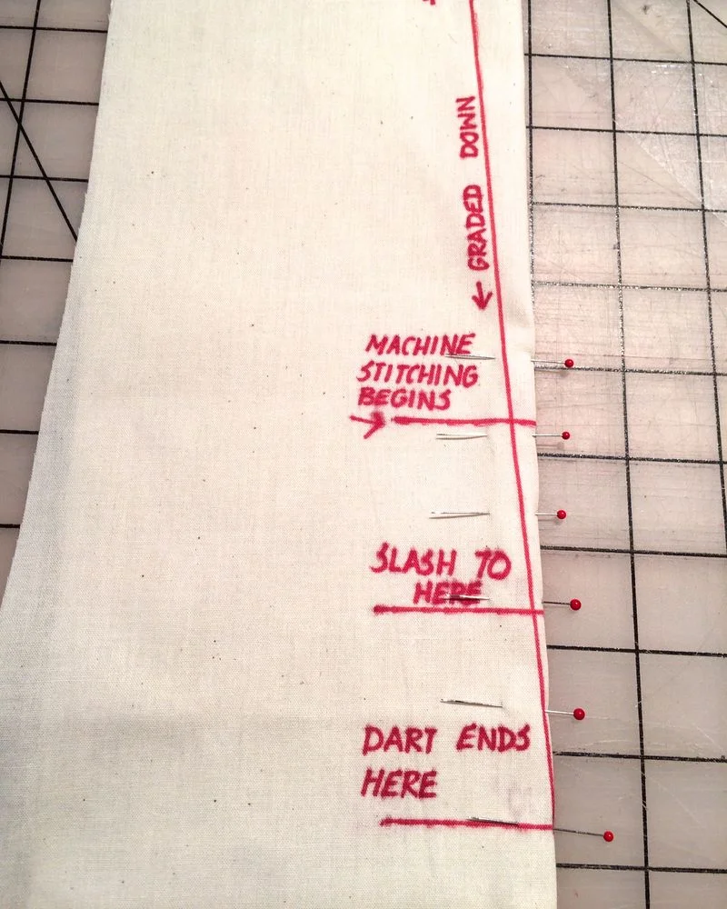 We are going to use a dart to neatly close off the end of the slash, rather than trying to pivot bias tape or use a hem with topstitching. This will result in a very clean stitch free finish which looks very professional.