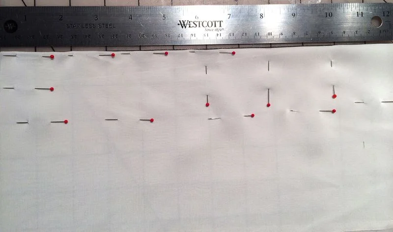 Only use silk pins on your fabric, they are much thinner and sharper and will not leave holes...Use them to mark you lines for the dart increments.