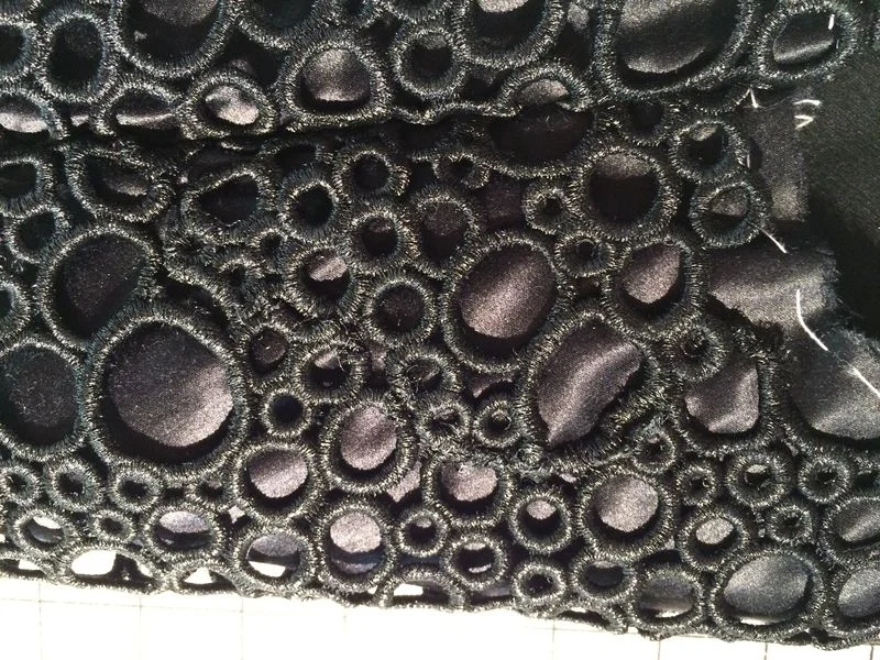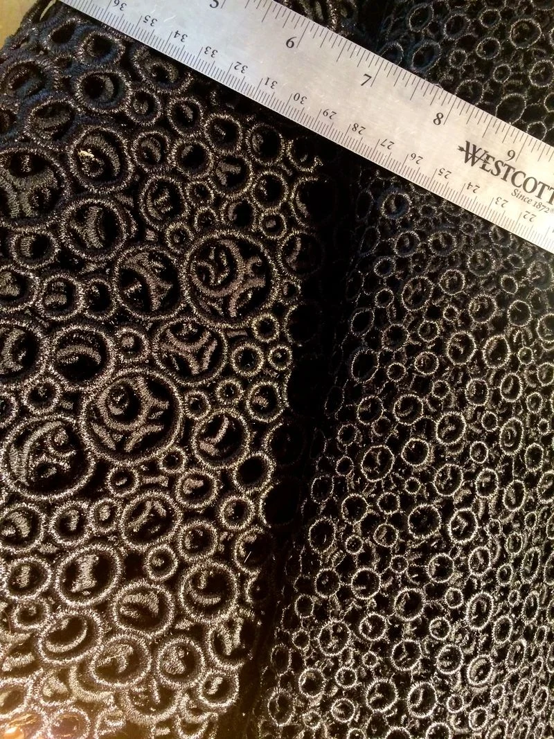 I had hoped to find a floral guipure that matched, but unfortunately there was nothing vaguely close as the circled guipure has an almost metallic wet look finish, and its pretty unusual.