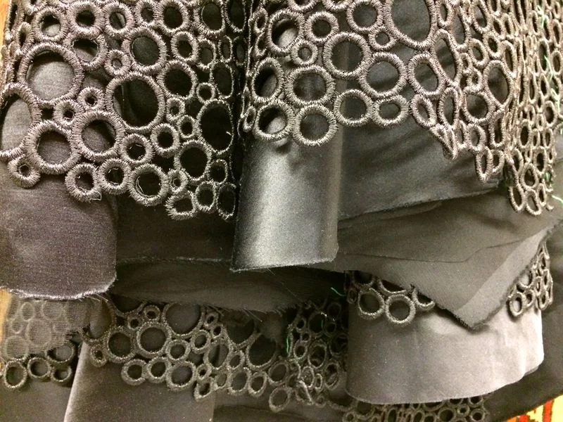 My biggest issue was the width of the lace fabric, at only 42" wide it was super narrow....so I knew there was no way I could use the skirt as drafted....and ended up cutting 6"off each side of each panel, reducing each of them by 12" total and shortening each of them 4" at the hem.