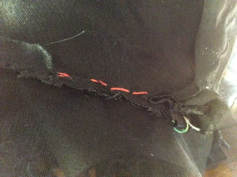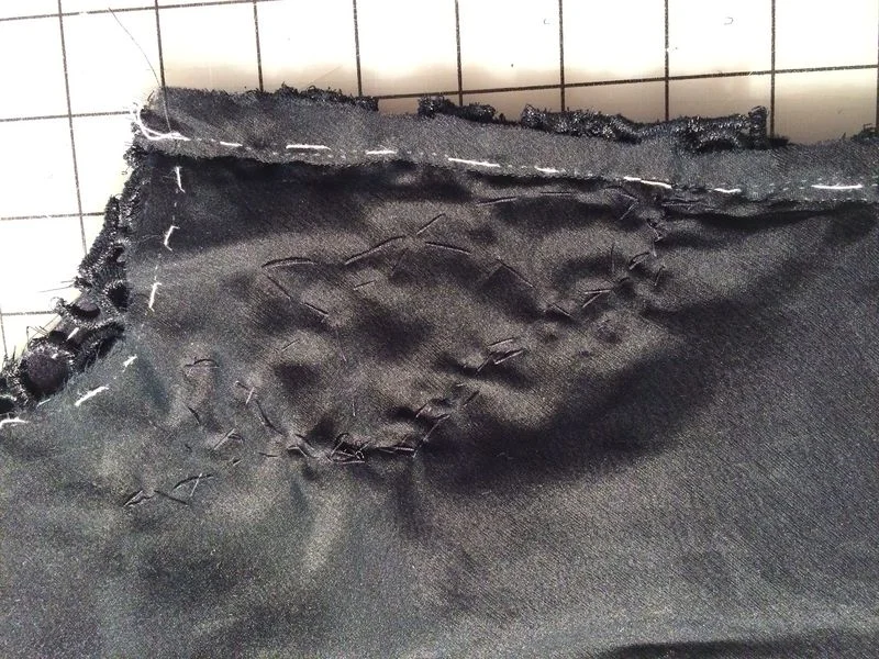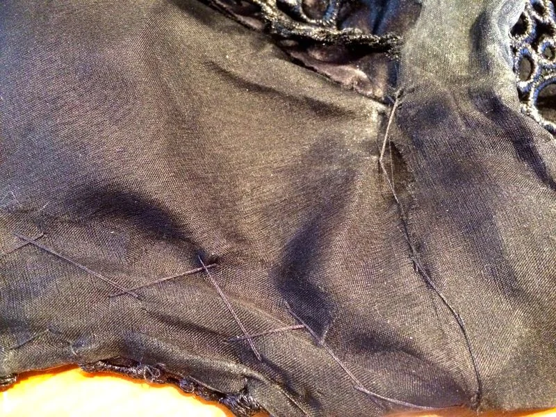 From there it was a simple case of flipping the organza to the wrong side, cutting it down to about 1" and catch stitching it all down to the underlining.
