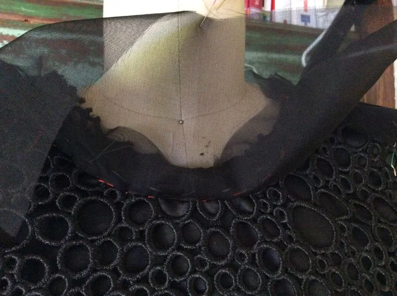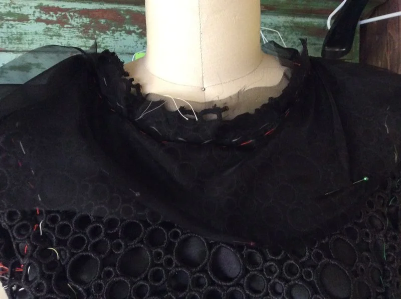 Which did make finishing the seams a little more difficult, but Susan suggested an organza finish to remove bulk and keep the neckline and armseye neat....