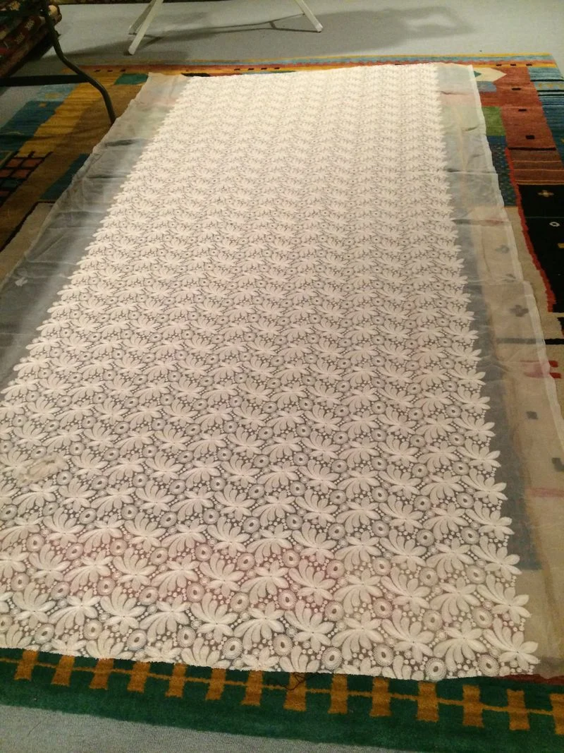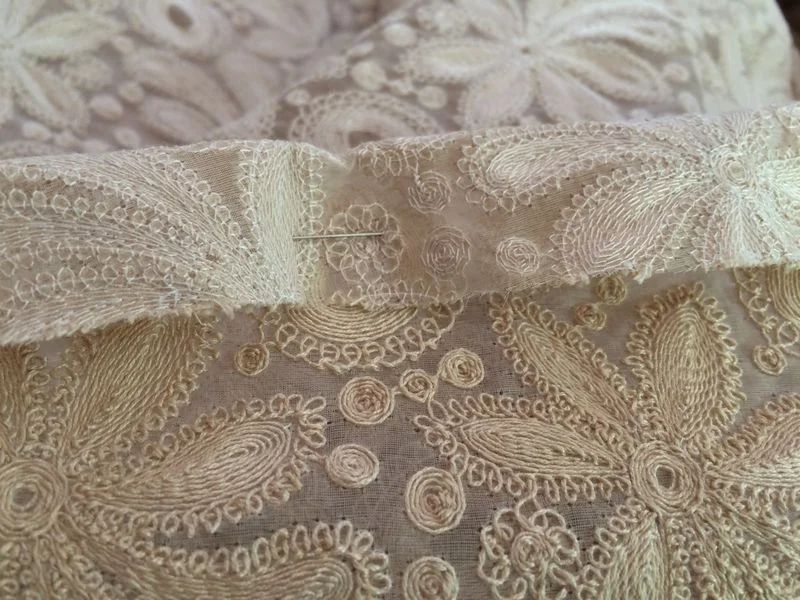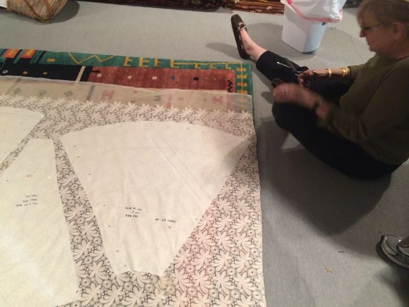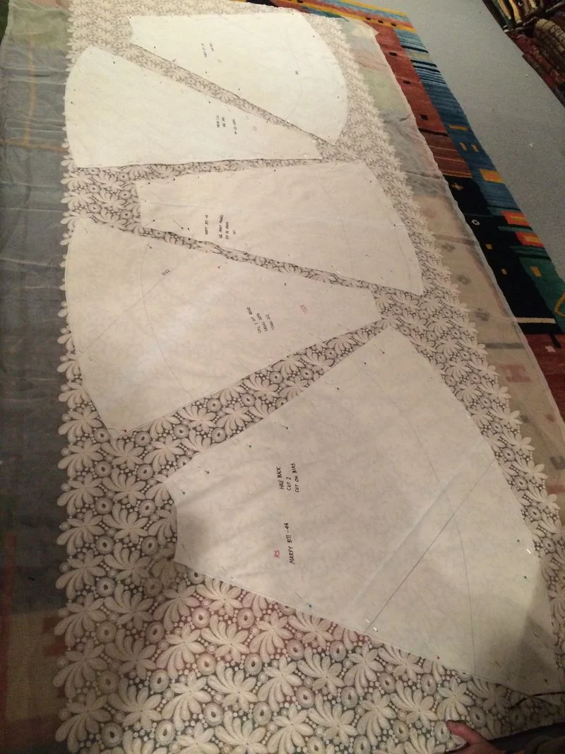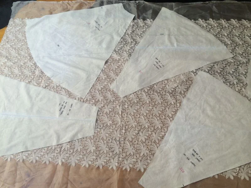 But Susan took one look at it and decided that grain lines would not be much of an issue...due mostly to the intricate dense embroidery....there is so much thread that it removes any normal grain rules.