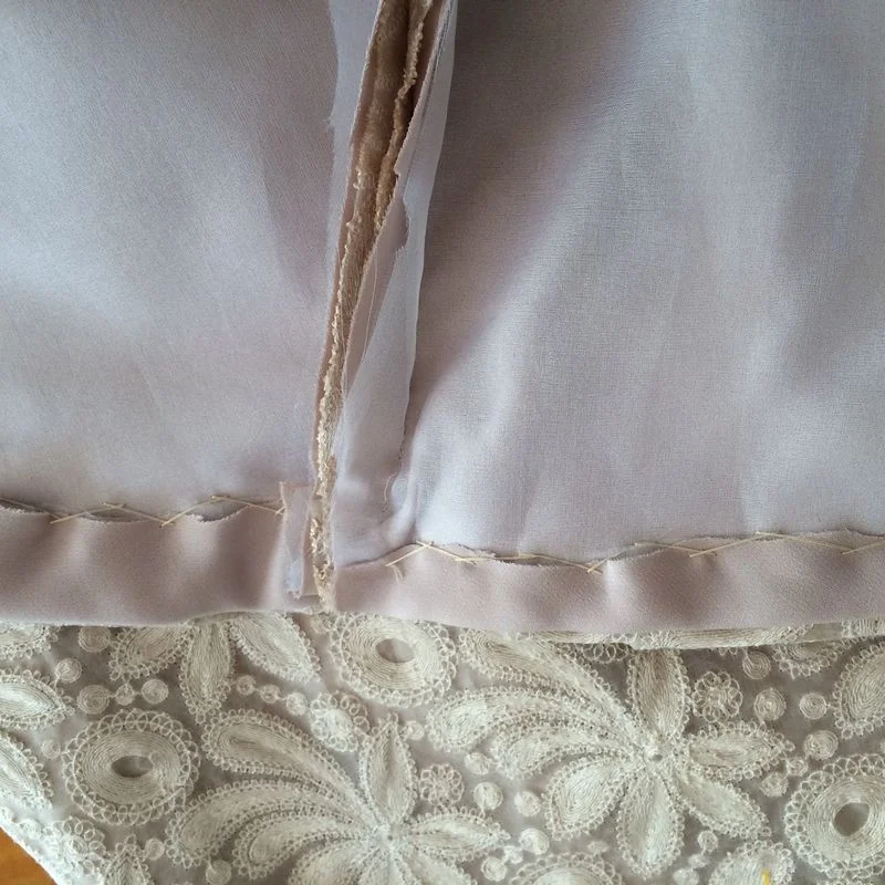 (Each layer hangs independently from the others, they are only attached at the side seams...which allows the skirt to flow gently and the bias to work properly)