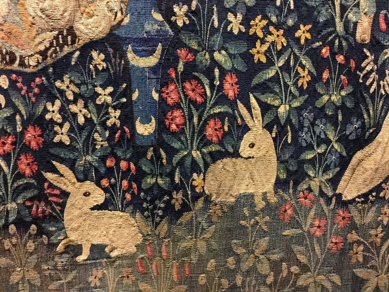 A series of six in total, floor to (medieval) ceiling in size....five representing the senses and the sixth unknown. They were found in 1841 in a castle, badly damaged and have been restored beautifully.