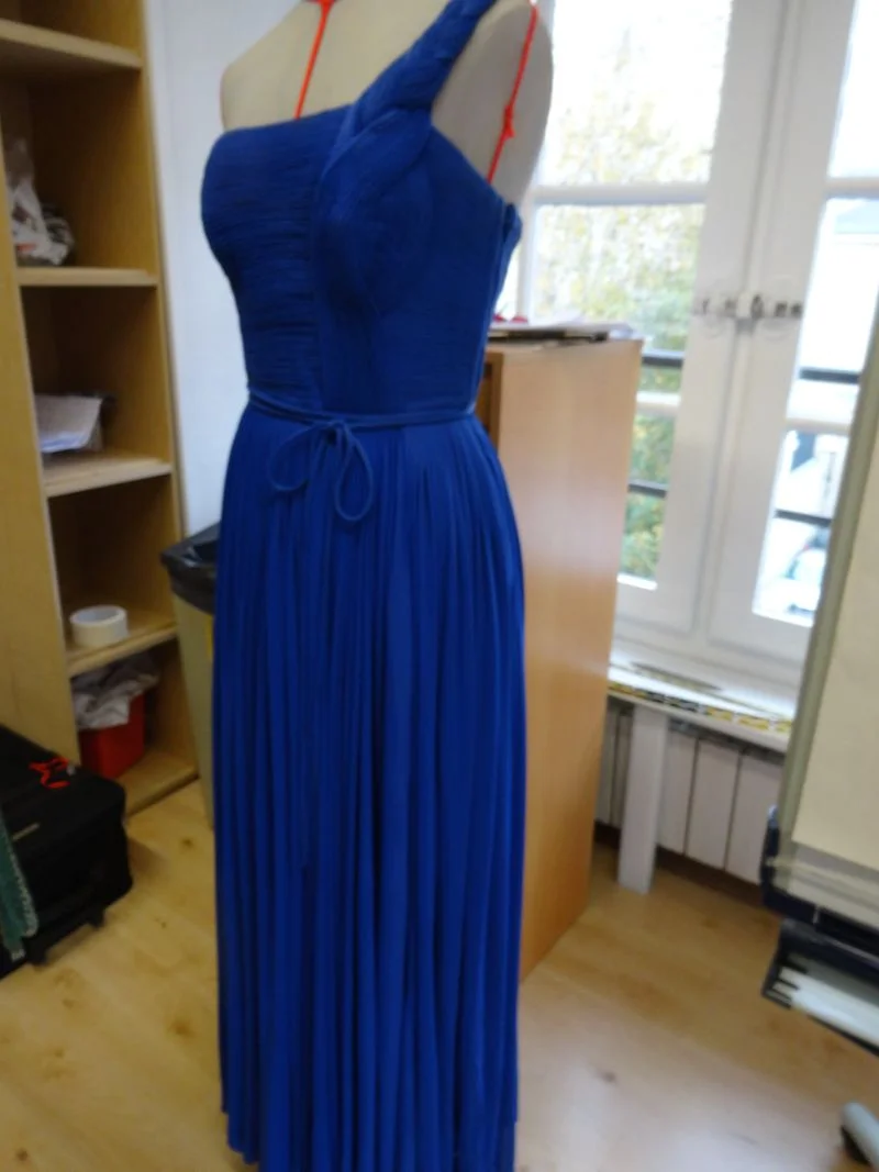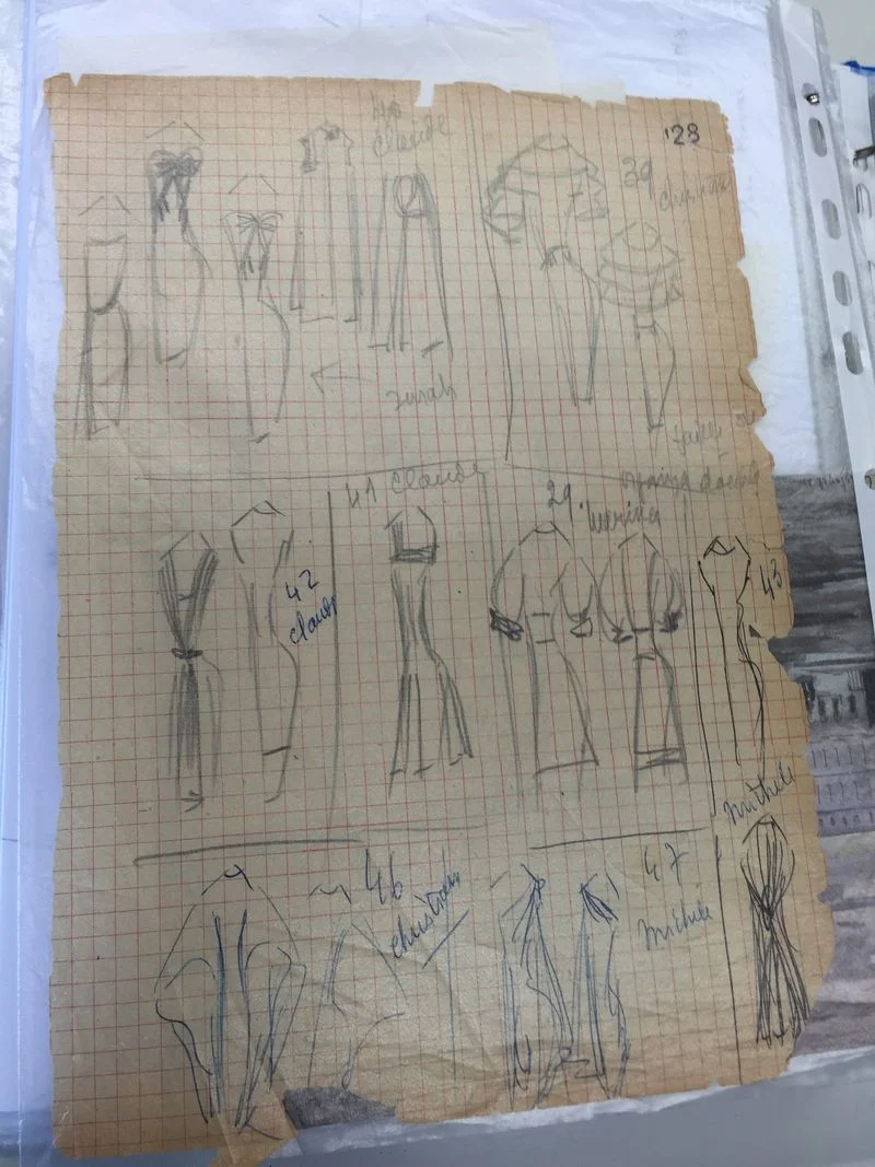 She began her apprenticeship with four years of training before she was allowed to make a skirt for a client, and says she remembers being absolutely terrified the first time....but soon was making dresses, both draped and pleated to order.