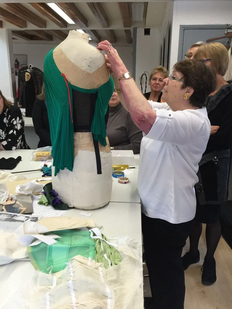 Although she is now in retirement, she does occasionally teach and in the last few months has been working on some miniature dress forms, re-creating copies of her work...... you would not believe the details, they are completely to scale, right down to a fully boned and complete corset.