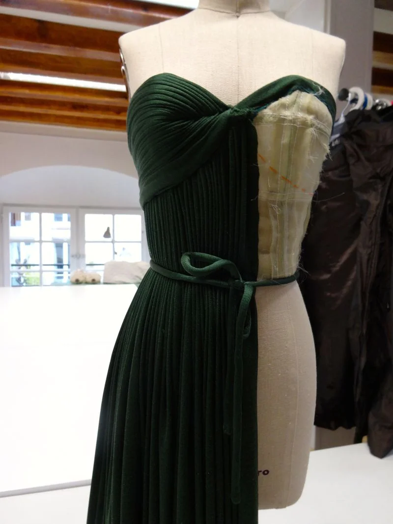 This helps keeps the weight of a garment to a minimum, as the yards of silk jersey needed for a dress become very heavy very quickly..