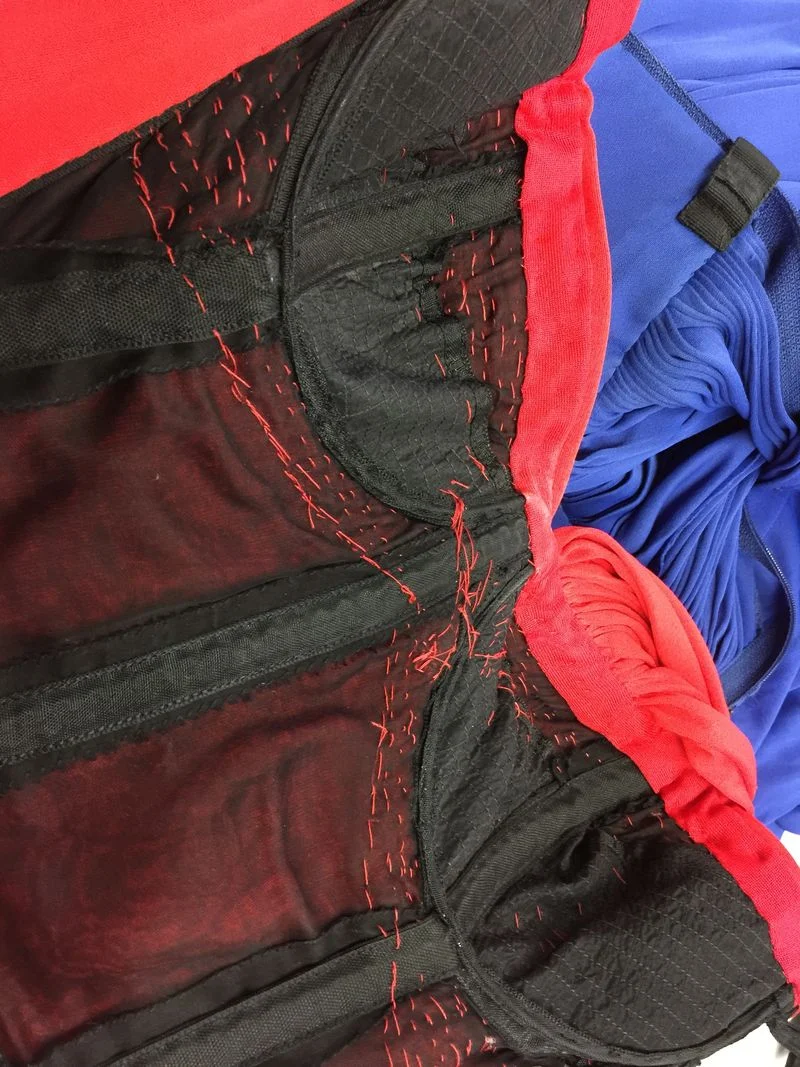 Madame Picco said a quick steam would normally be next and then it would be pinned to the relevant section of corset and sewn tightly to it (the pleats need to be pulled firmly again to hold their shape - as you can see above, they relax once loose)
