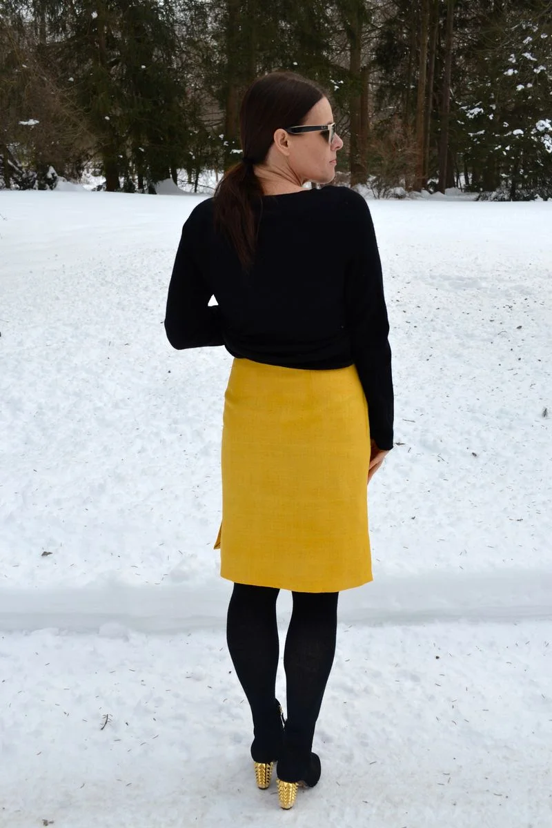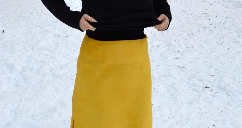 For this first version of the skirt, I used a lightweight linen from Mood and gave it some stability and body by underlining it using a silk organza, I hand picked the zipper and facings and hand sewed the seams and hem using a catch stitch finishing it with a silk crepe de chine lining - not shown.