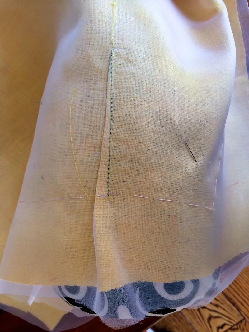 If you went the couture route, prepare your slits as above but use a catch stitch to sew the fashion fabric to the underlining - from the hem to the waist - and give them a gentle press when finished with a press cloth.