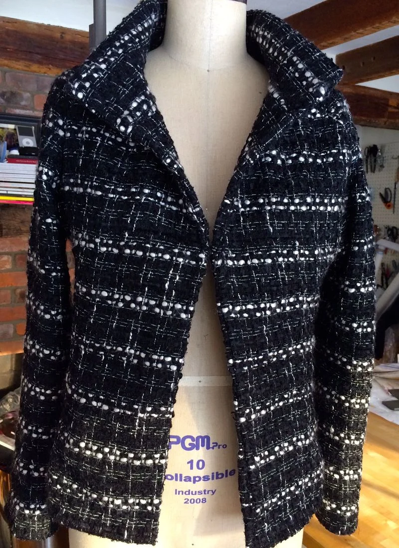 I think next time I would have the outside collar sewn to the jacket, then I would padstitch the front and collar, using stay tape to mark the break once I fitted it on me.....