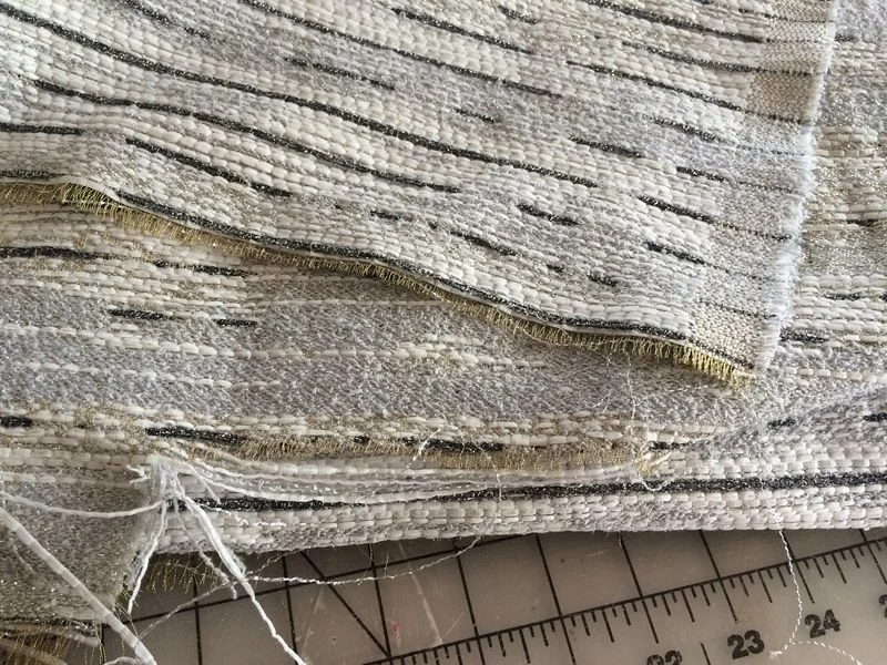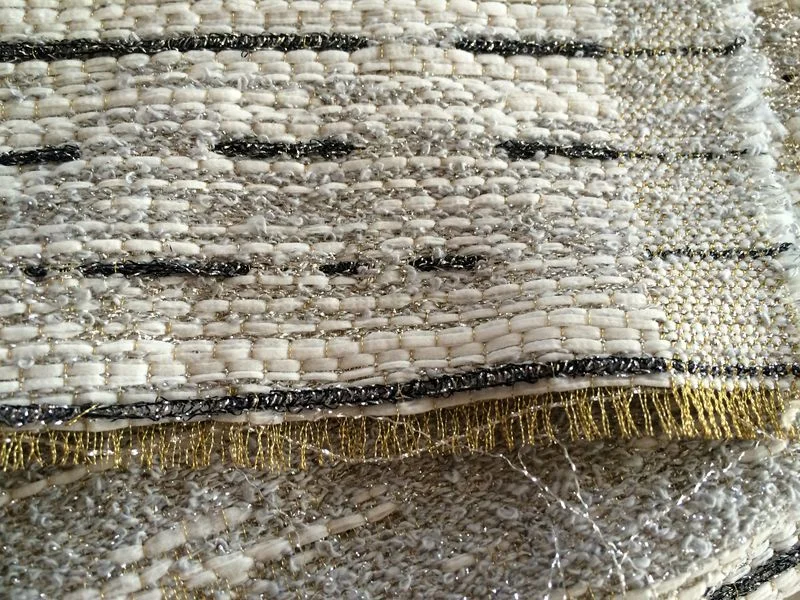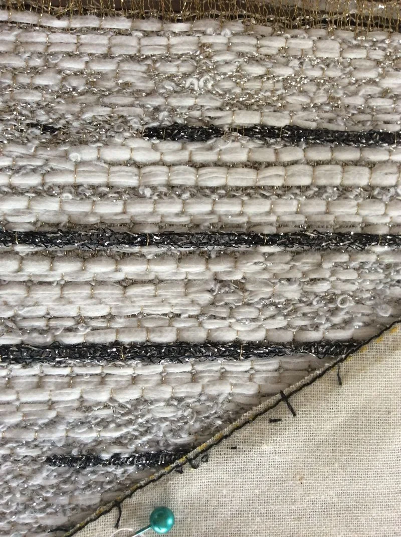 A Chan*l haute couture boucle, a fine heavily weaved wool that has metalic weft and warp threads.