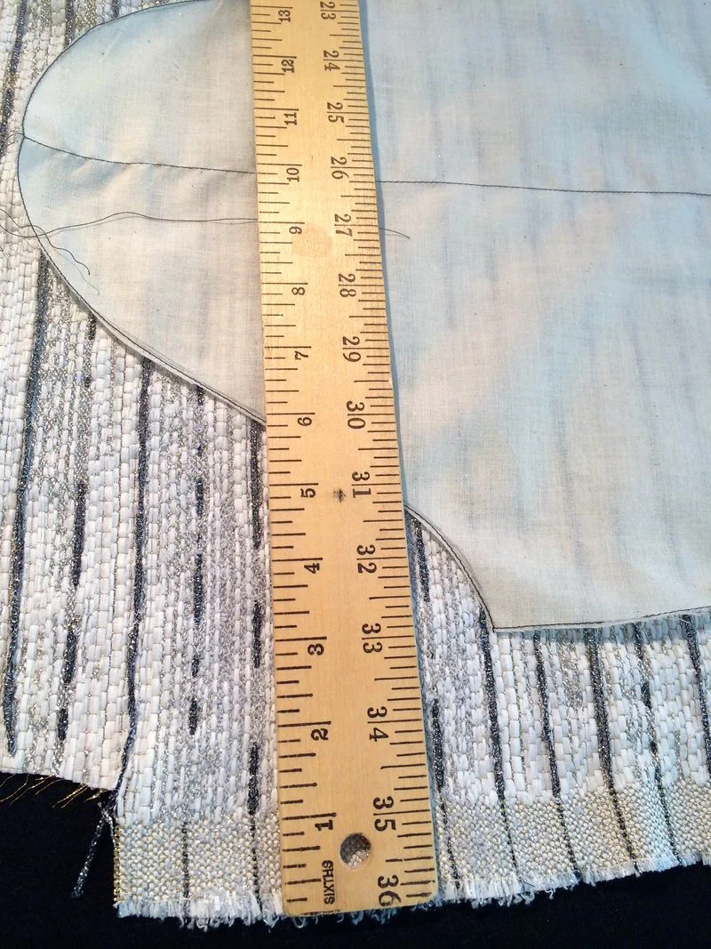 A metal or wooden yard stick is always incredibly useful at this stage. A fabric tape measure stretches over time, and although a millimeter here and there might not mean much...... in a fabric it can make all the difference.