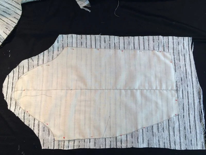 and then roughly start laying out your muslin pieces, just getting a feel for how much fabric you have, how large you can cut your seams, and what configuration will work best for you.