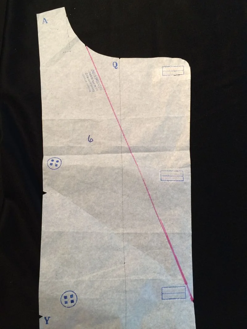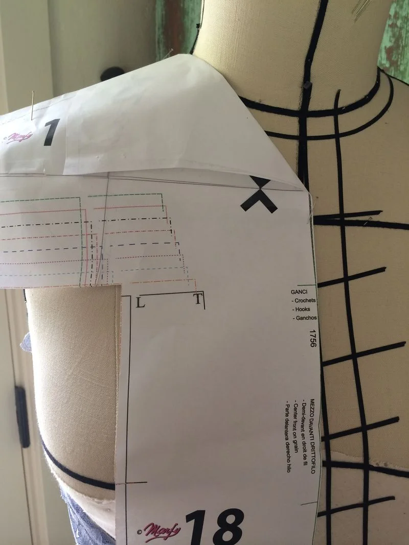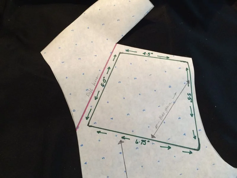 Before we start playing around with our pattern, we need to find our roll line so that the shoulder support we will be making does not overlay into this area.