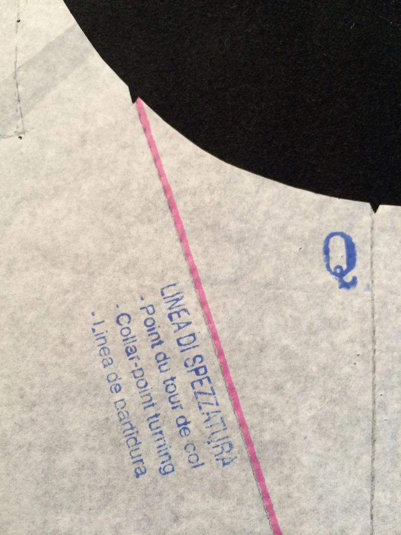 If you are making a more traditional coat or jacket, your roll line will be more easily identified at your lapel.. I made Marfy 3201 a while ago and it was marked on the front panel with a single notch at the top and bottom..