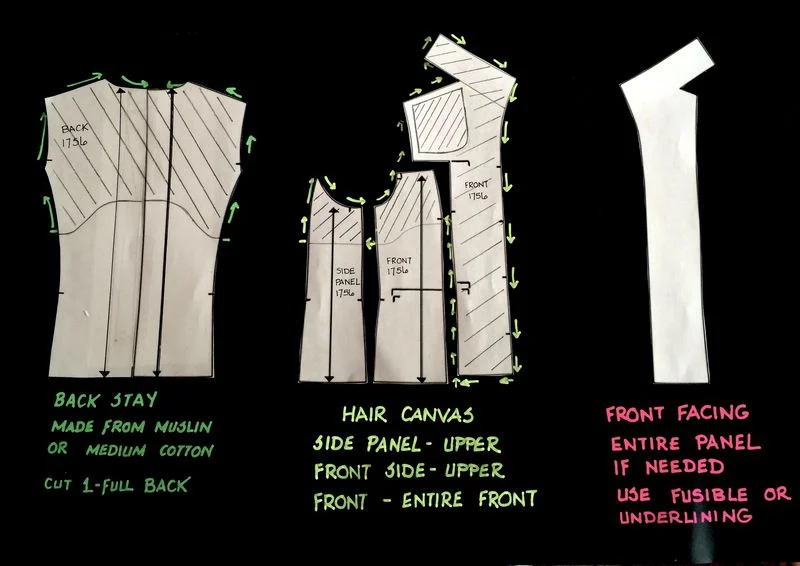 When making a pattern for interfacings, your main objective will be to keep bulk to a minimum.....cutting individual panels and joining them together with seaming adds layers to your jacket...