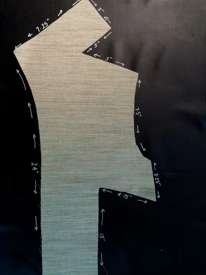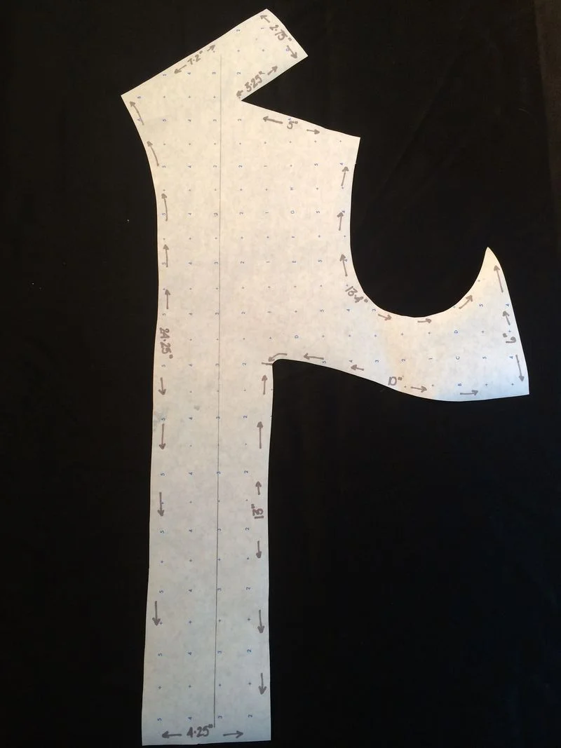 Then using carbon paper or a pencil, trace around your shape making one whole pattern (do not add seam allowances, and if you are working with them included...remove them before or after tracing.