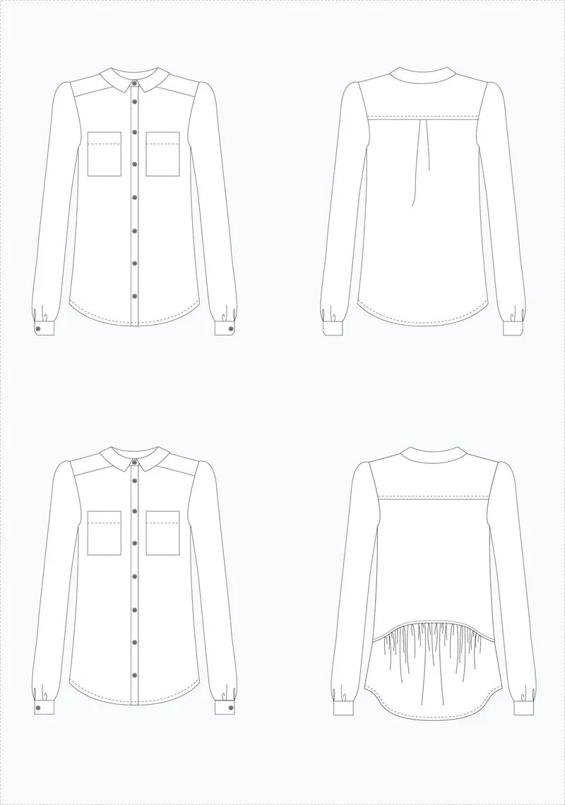 I've also increased the stand and collar slightly and tapered in the sleeves for a closer but still loose fit, as well as lengthening the body by 2" and exaggerating the curved hem, so I can tuck the shirt in for a formal fit and leave it out for weekend wearing.