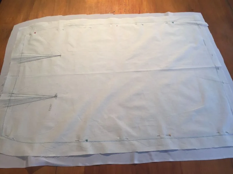 I used my altered Marfy free pattern from last years sew along without making any further alterations, cutting a muslin first to check fit and then cutting a secondary cream silk charmeuse layer before joining them both together with some thread basting.