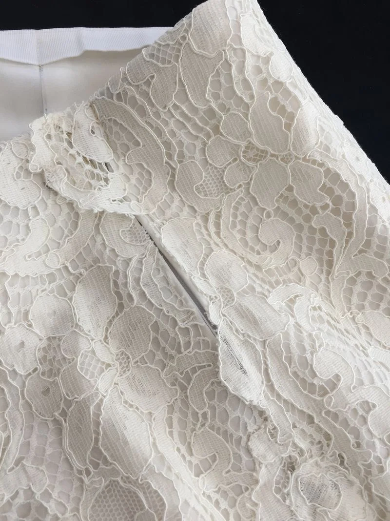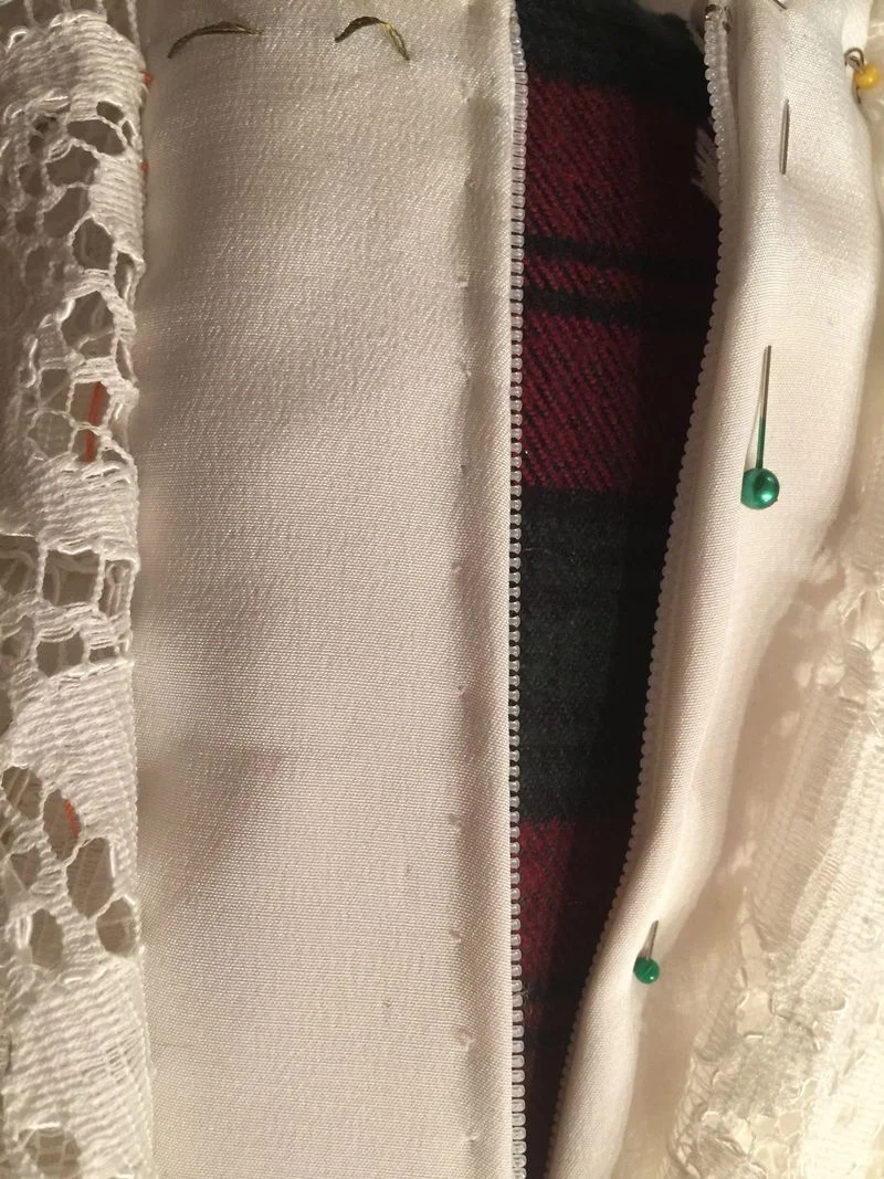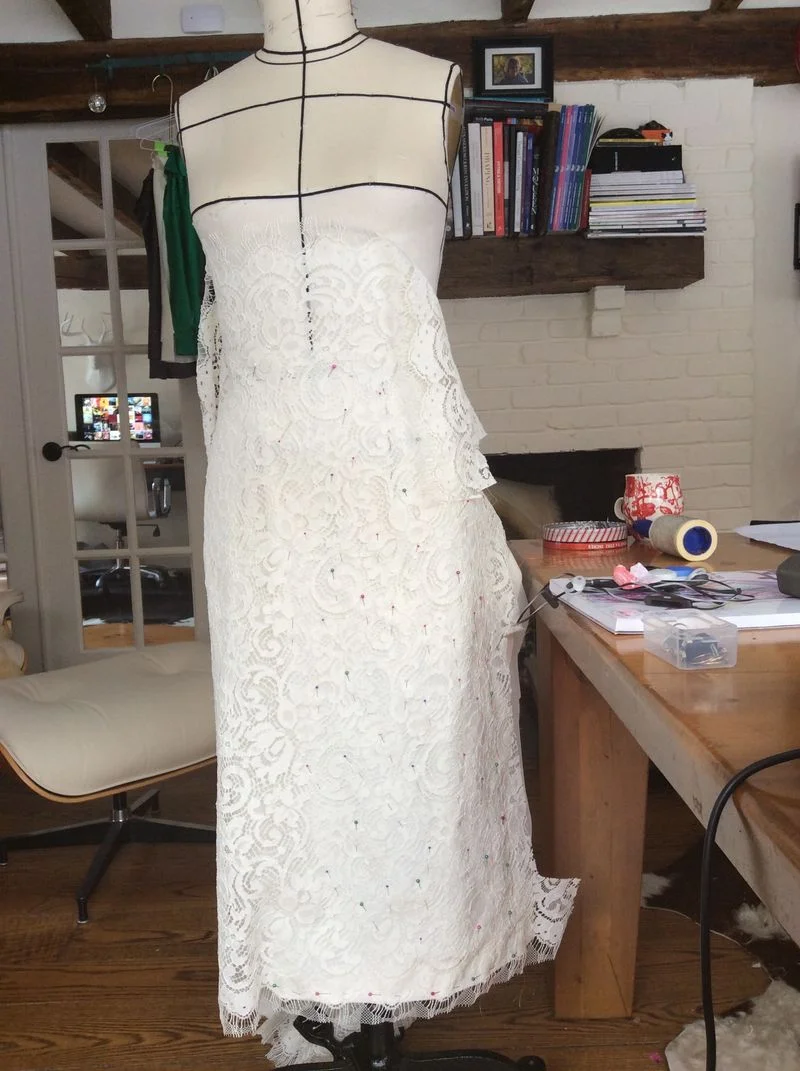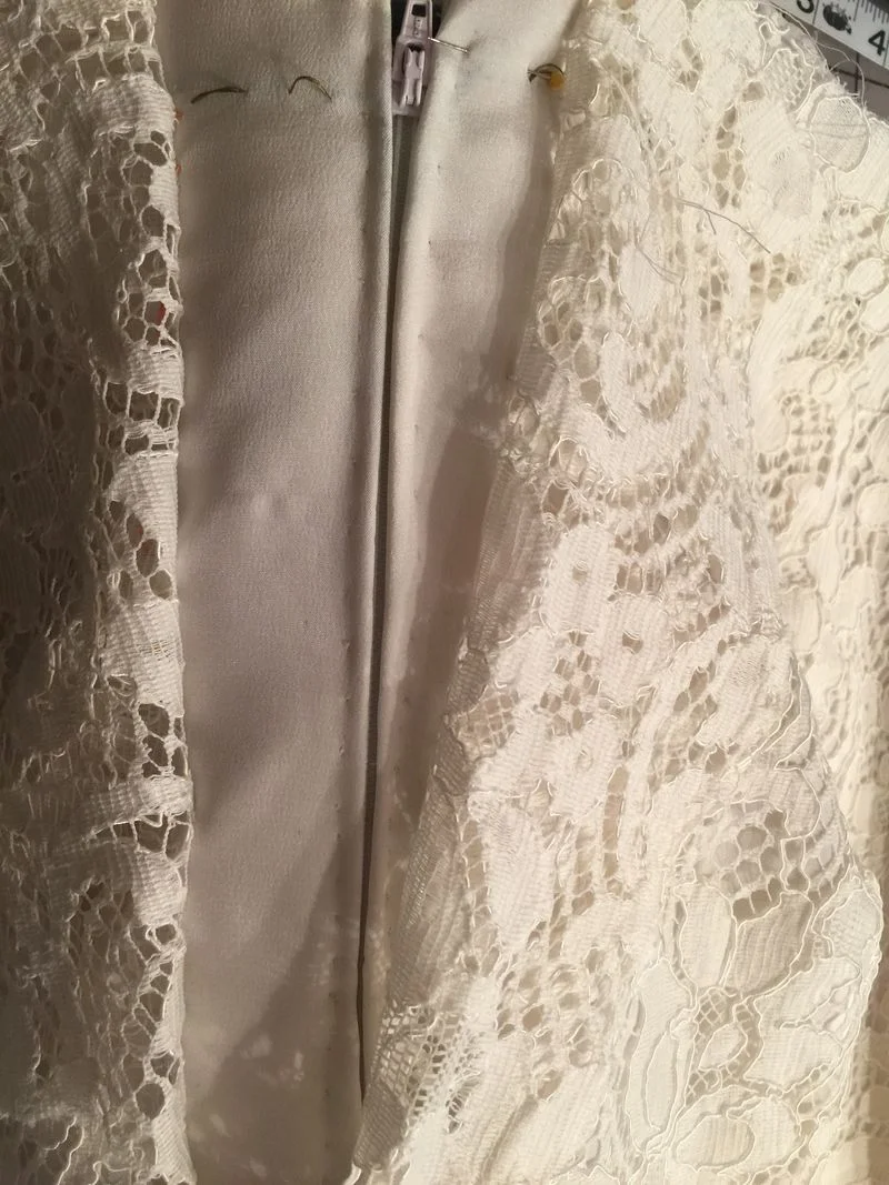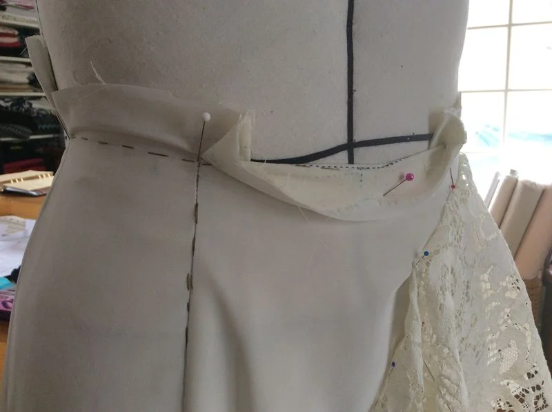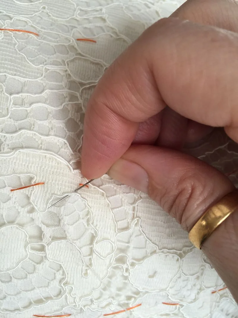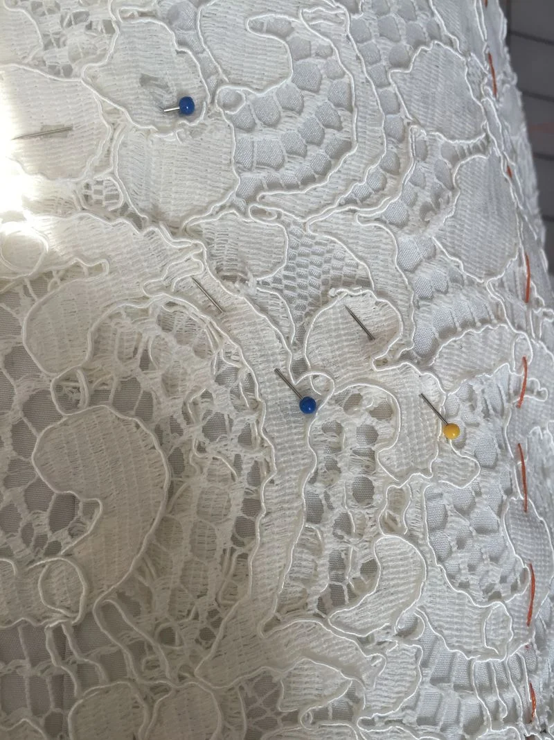 It's not an exact science, and I find that it's not unusual for me to try the skirt on two or three times - but it's so much better to have the lace laying nicely at this stage before you go on to the real hand stitching.
